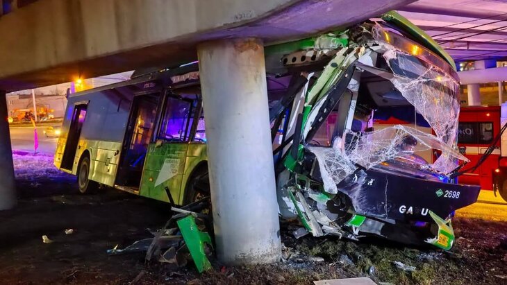 Автобус врезался в опору моста в Челябинске